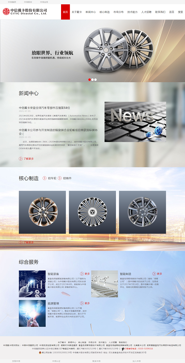 1988年,伴隨著改革開放的春風(fēng),中信人做出了一個重大決定,在渤海之濱秦皇島建造了中國大陸第一家鋁車輪制造企業(yè)----中信戴卡股份有限公司(以下簡稱中信戴卡),中國大陸第一只鋁車輪在這里誕生。