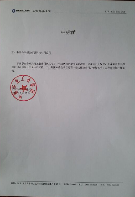慶祝創(chuàng)想網(wǎng)絡(luò)在中秦興龍工業(yè)集團網(wǎng)站的項目中憑借優(yōu)越的提案與技術(shù)實力,贏得了本次中秦興龍工業(yè)集團的官方網(wǎng)站項目!